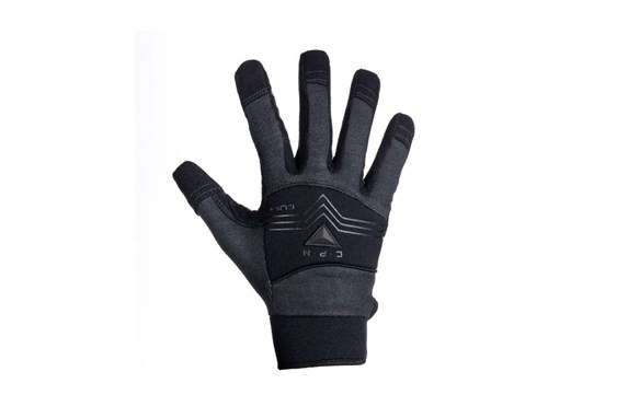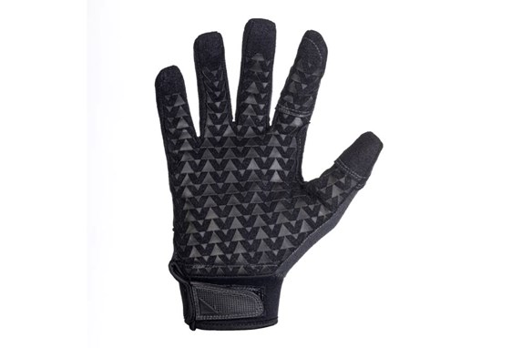 Diskret, svart nålskyddshandske i konstläder baserad på MoG CPN-teknik. Framsidan är fodrad med ett tunt metalltyg som skyddar mot nålar och vassa föremål – 4 lager i handflatan och 2 lager på framsidan av fingrarna och upp över fingertopparna. För extra skydd är baksidan försedd med skärskyddsmaterial tillverkat av Kevlar®. Manschetten justeras enkelt med kardborreband. Skärskyddsnivå F.