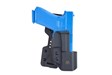 Besides this it can be applied to the holster with a three point application, integrated and personalized with a large range of spacers and distance plates, which permit the customisation of the inclination, the height and the distance from the operators body depending on the operating needs.