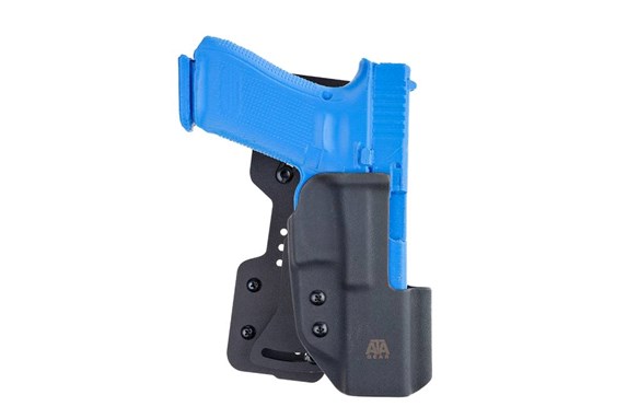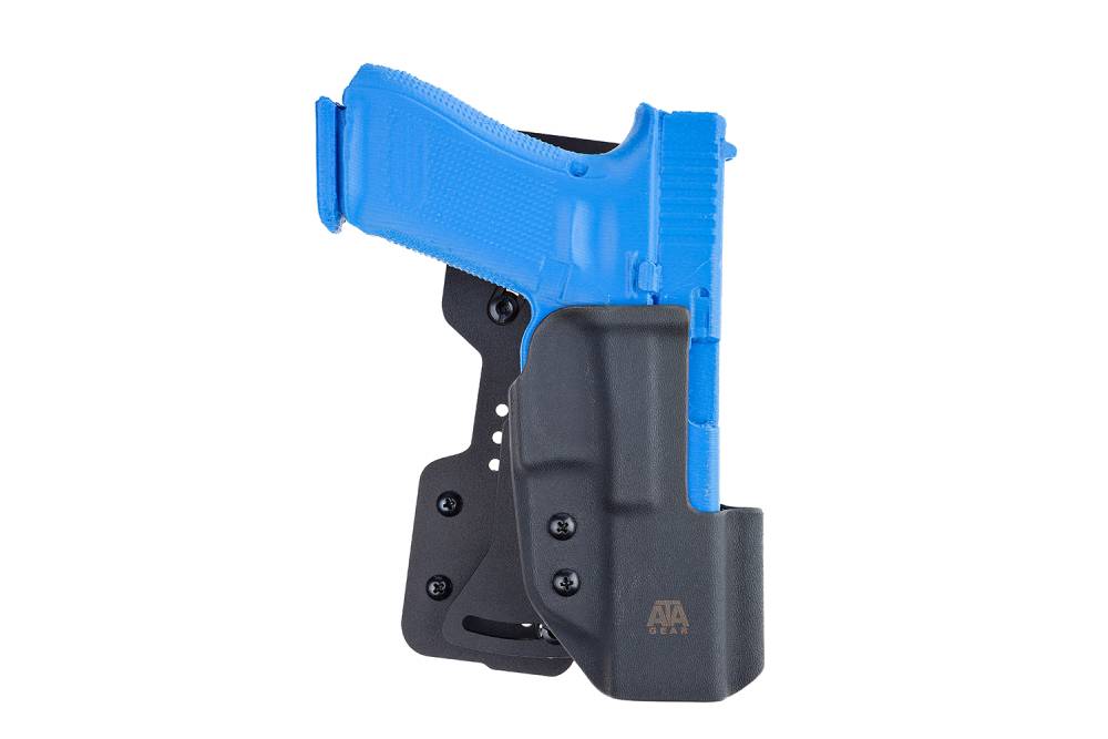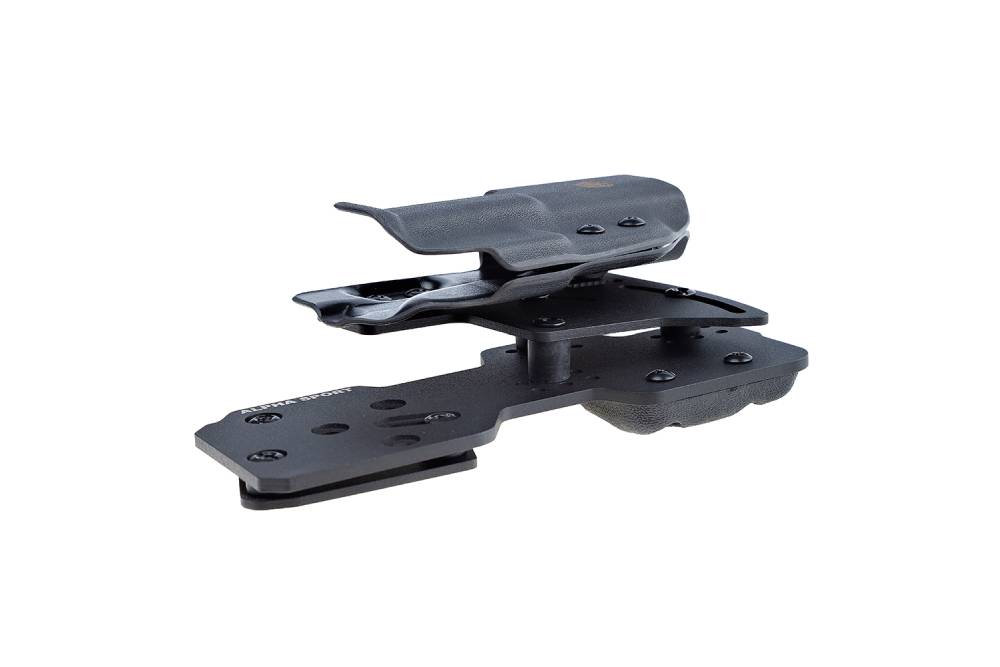 Tack vare sin design har hölstret möjlighet att justera vapnets lutningsvinkel i tre plan, vilket gör det möjligt att justera hölstret efter skyttens önskemål. Hölstret ger möjlighet att justera pistolens hållkraft, och en speciell kudde på baksidan av sänkplattformen fixerar hölstret tillförlitligt när skytten greppar pistolen. Grundmonteringsalternativet är utformat för bälten upp till 45 mm bred. För installation måste ett hölster för bredare bälten användas med TEK LOK. Beroende på kundens önskemål kan du för bekväm transport eventuellt installera en speciell snabbkopplings mekanism, vilket gör det enkelt att lossa hölstret från bältet.