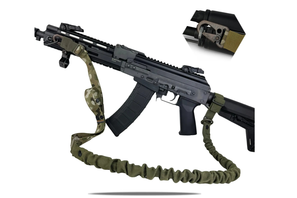 En inbyggd mekanism med en extra D-ring möjliggör snabb omställning från en tvåpunktsrem till en enpunktsrem. När den väl är ombyggd har du en justerbar enpunktsrem med elastisk kärna. En snabbjusteringsögla gör det enkelt att finjustera längden för maximal komfort och funktionalitet.