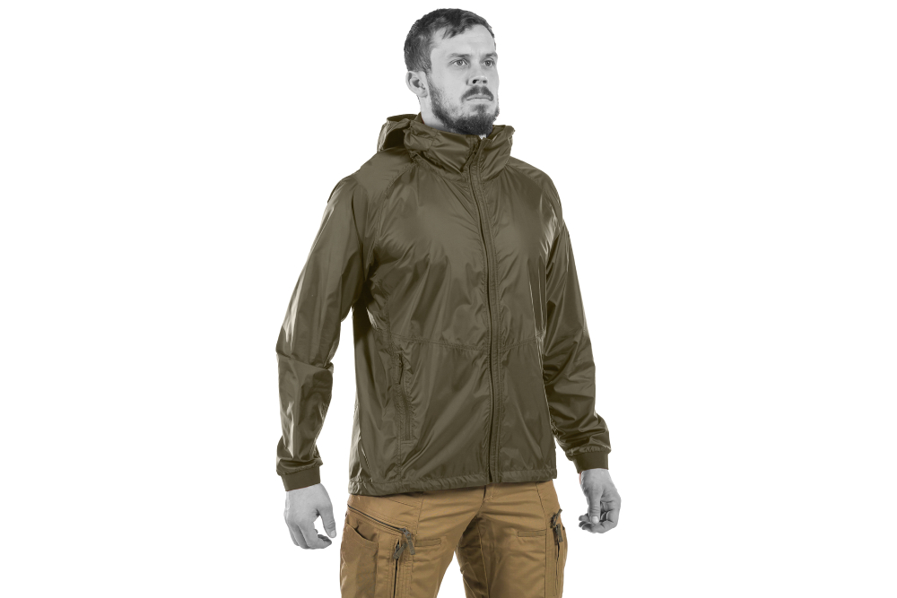 En ultralätt jacka konstruerad för skydd i lätt regn och kraftiga vindar.