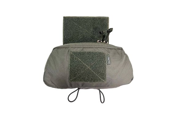 UTactic Groin Protection Pouch är utformad för att monteras på plattbärare, skyddsvästar och bröstfickor. Det finns tillräckligt med utrymme inuti för att passa en vanlig IFAK. Fickan kan användas för många andra praktiska ändamål. En av funktionerna hos denna utrustning är möjligheten att installera en skyddspanel i ett speciellt fack inuti, vilket gör att du kan öka skyddsområdet utan att förlora rörlighet. Nätfickan på bakväggen kan användas för små föremål. Det finns tre elastiska band på framväggen för att säkra olika föremål.